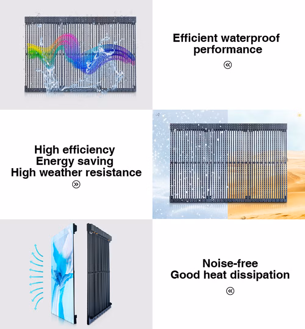 Il display a griglia LED è un tipo di display trasparente. Non solo non influisce sulle esigenze di illuminazione naturale e di visione all'interno dell'edificio, ma influisce minimamente sull'aspetto dell'edificio. Con un design senza ventola, non produce rumore, offre un'elevata dissipazione del calore e consente un'installazione e una manutenzione rapide.
